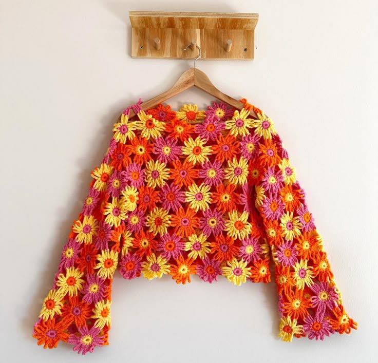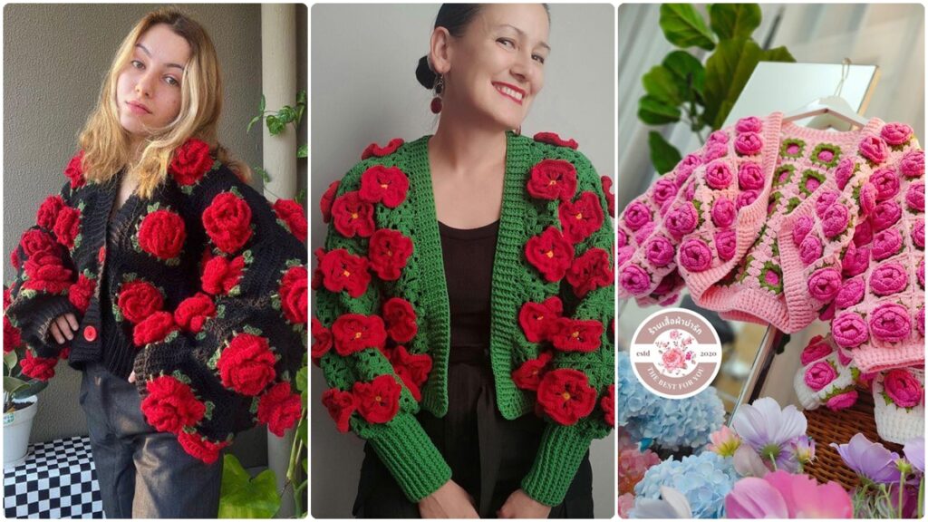 18 Inspirações de Casacos de Crochê Floral e Vídeo Aula Completa no Final: