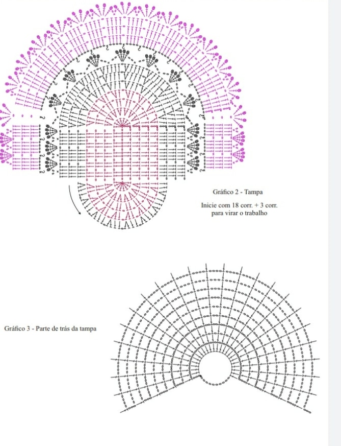 Continue conforme gráfico 2, trabalhando em carr. circulares e realizando as devidas trocas de cores. Feche com p.b.x. Arremate o fio.