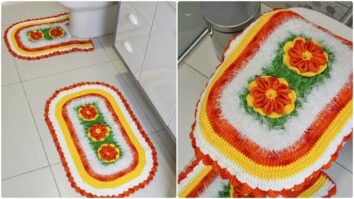 Lindo jogo de banheiro em crochê com flores: Passo a passo com gráficos