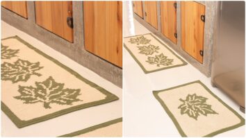 Os arranjos florais são fixados nos cantos dos tapetes, proporcionando um charme adicional às peças. Finalize colando as micropérolas no centro das flores, criando um destaque delicado e elegante.