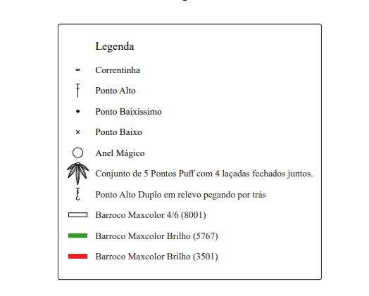- Agulha de Crochê: Círculo 3,5 mm – recomendada para facilitar o manuseio do fio durante a execução dos pontos.