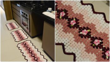 A técnica inconfundível do crochê se manifesta nos detalhes do Conjunto de Tapetes de Banheiro, proporcionando padrões e texturas que não só desempenham a função prática de absorver umidade. Aprenda aqui no blog Katia Ribeiro Crochê essa linda peça.