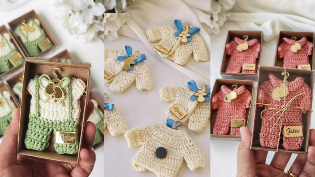 Uma das maiores vantagens das lembrancinhas de crochê é a possibilidade de personalização. Elas podem ser feitas em uma infinidade de formas e tamanhos, desde pequenos sapatinhos e bonequinhas até chaveiros e miniaturas de bichinhos. Além disso, as cores podem ser escolhidas de acordo com o tema do evento ou as preferências pessoais dos pais, criando lembranças que são verdadeiramente únicas e significativas. A personalização pode incluir ainda o nome do bebê ou a data do evento, adicionando um toque extra de exclusividade.