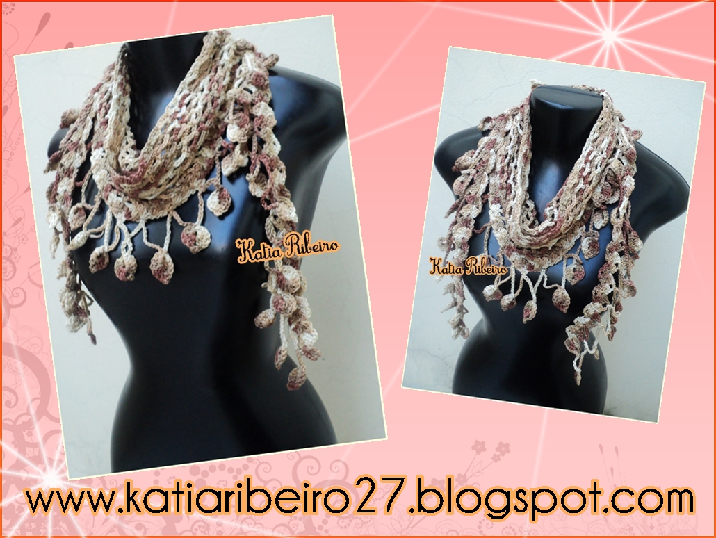 Amigas, aproveitando minha fase de lenços, hoje vim mostrar para vocês este que encontrei na Etsy , paquero-o há muito tempo e agora chegou a vez de fazê lo, divulguei no grupo Amigas do Artesanato Crochê e Tricô no face para ver se alguém tinha o gráfico ou receita e uma das queridas amigas , a Marla do blog MP CROCHÊ ( aproveite para segui la que os trabalhos dela são tudo de bommm ) gentilmente me enviou o gráfico do ponto, fui seguindo e também a foto e deu super certo!!!