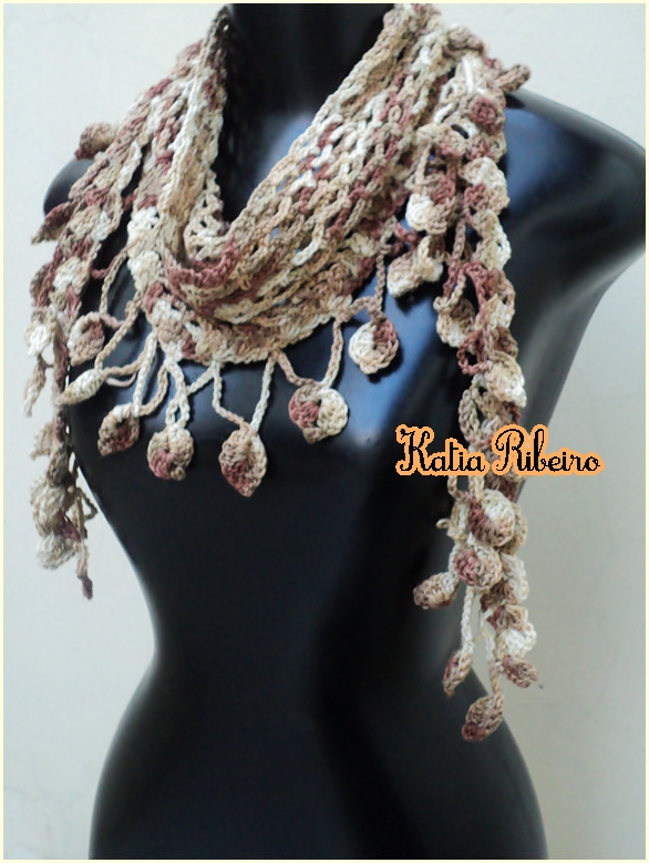 Amigas, aproveitando minha fase de lenços, hoje vim mostrar para vocês este que encontrei na Etsy , paquero-o há muito tempo e agora chegou a vez de fazê lo, divulguei no grupo Amigas do Artesanato Crochê e Tricô no face para ver se alguém tinha o gráfico ou receita e uma das queridas amigas , a Marla do blog MP CROCHÊ ( aproveite para segui la que os trabalhos dela são tudo de bommm ) gentilmente me enviou o gráfico do ponto, fui seguindo e também a foto e deu super certo!!!