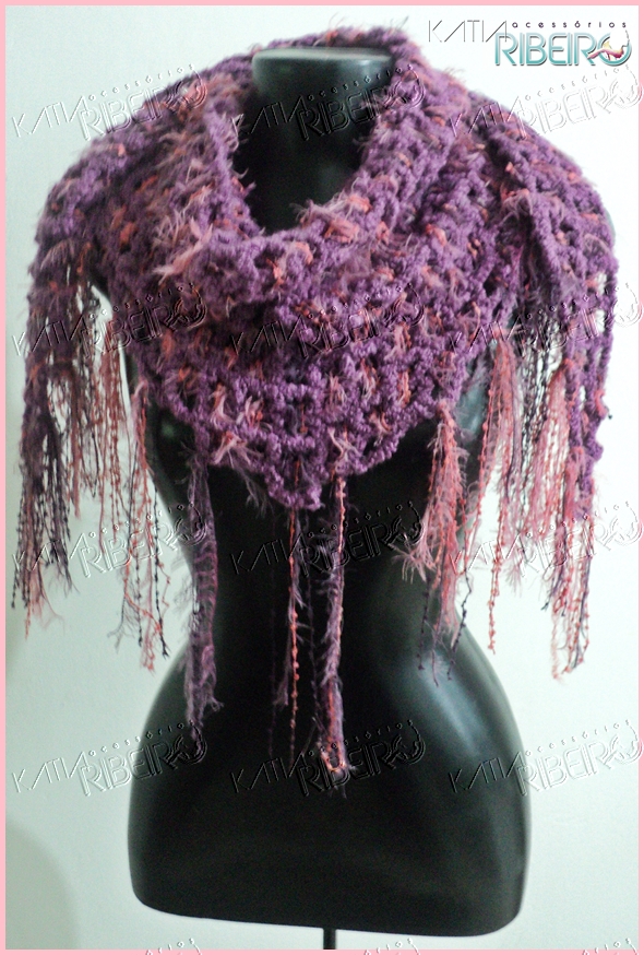 Hoje trago mais um Lenço Marrocos este foi feito com o fio Pluma da Línea Itália e o fio Maitê da Estilotex, este fio é composto por um mix de três fios sendo dois com bolinhas e um com pelos com três cores diferentes ( cinza, grafite e telha) e o efeito fica prá lá de especial, as minhas clientes gostaram muito sem contar que com este modelo simples, com imaginação você consegue fazer peças maravilhosas,únicas e diferenciadas. O vídeo desta peça se encontra nas postagens anteriores.