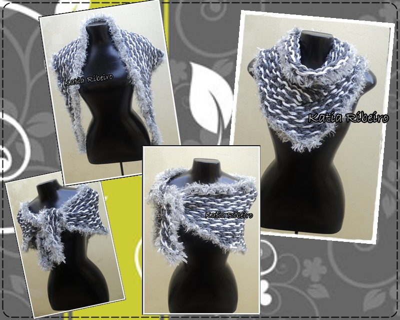 Consegui terminar várias peças e no decorrer dessa semana vou mostrando para vocês está bem? Esse hoje é o já conhecido Lenço Marrocos, dei uma repaginada nele, deixei o sem franjas, passei o fio rendado intercalado entre o ponto rede e passei o fio de pelos em toda a extensão da peça, pode ser usado de diversas maneiras como vc pode ver abaixo. No final da postagem você acompanha o vídeo com a receita da artesã Márcia Quadrado.