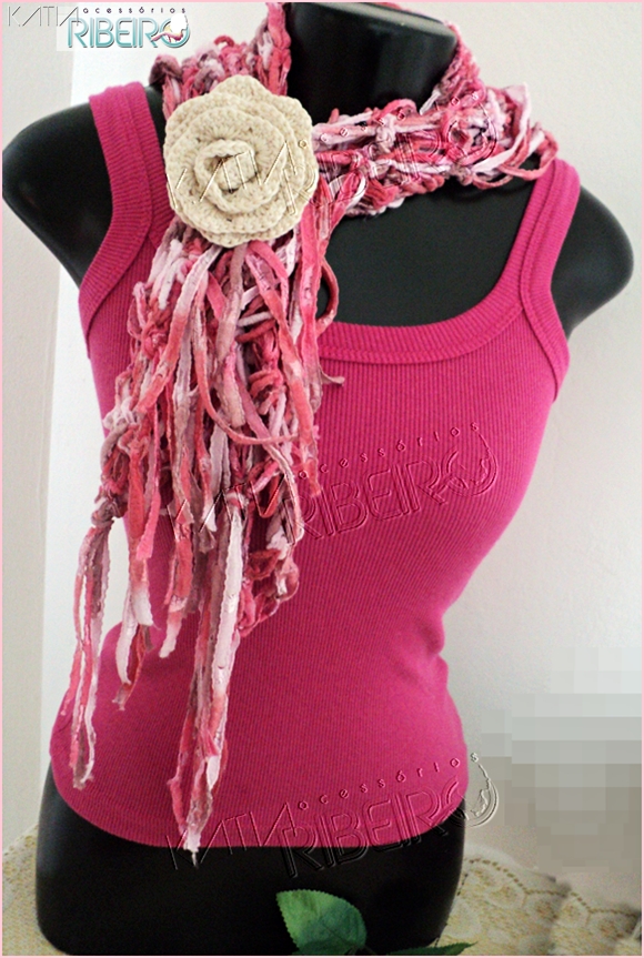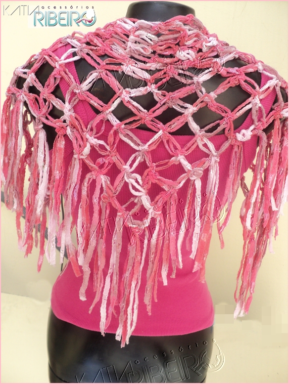 Hoje trago outro lenço Velvet porém num rosa tom sobre tom, feito em crochê ( ponto segredo) o fio tem um leve toque de veludo misturado com um brilho discreto em um produto tipo fita, suas franjas conferem ao mesmo tempo um ar chic e despojado, podendo ser usado em diferentes combinações. Poderá ser executado também em outras cores e tamanhos sob consulta.