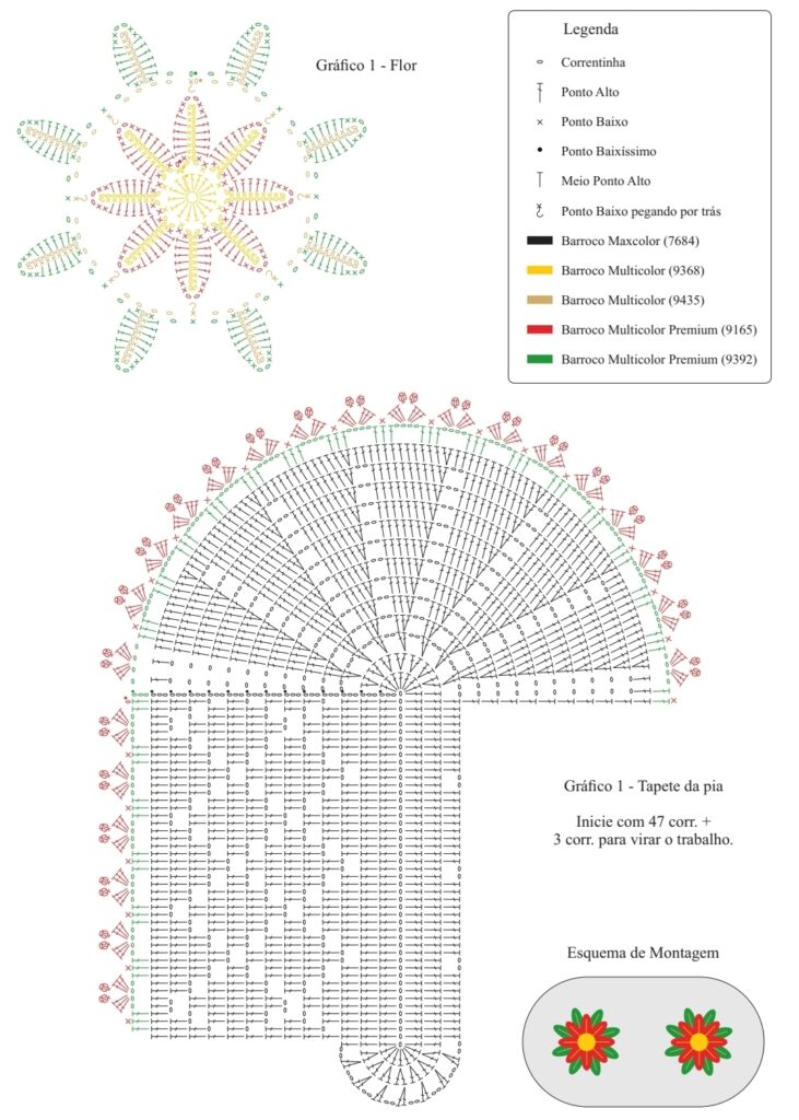 Sendo asssim, cole 2 flores sobre o tapete acomp. esquema de montagem.