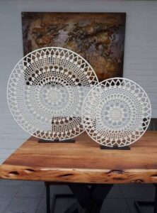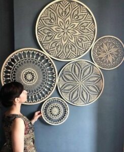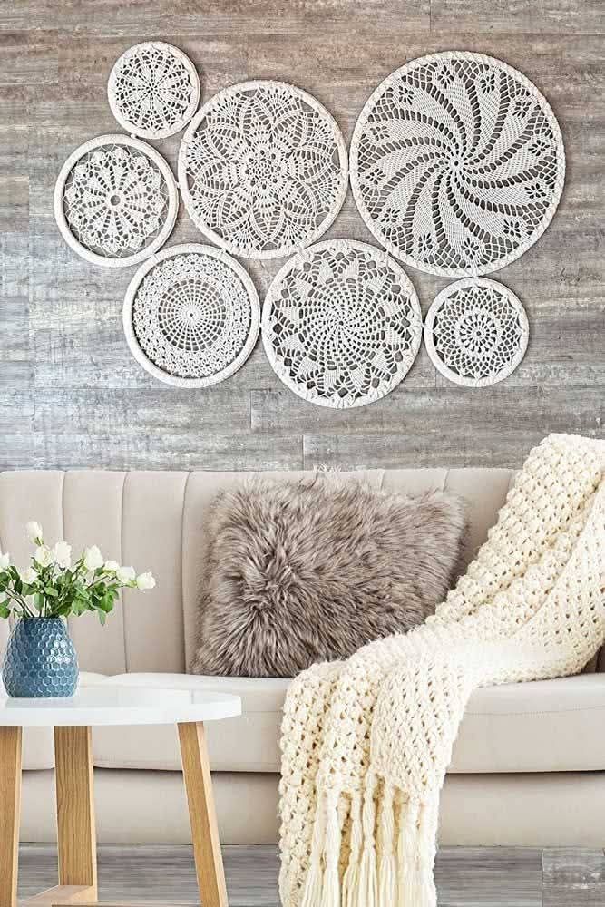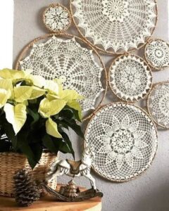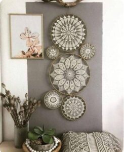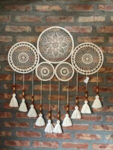 - Estrutura: em peças de parede, use aro de bambu ou metal, em sousplats e centros de mesa, reforce com uma carreira final de ponto baixo.