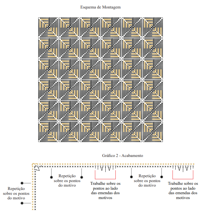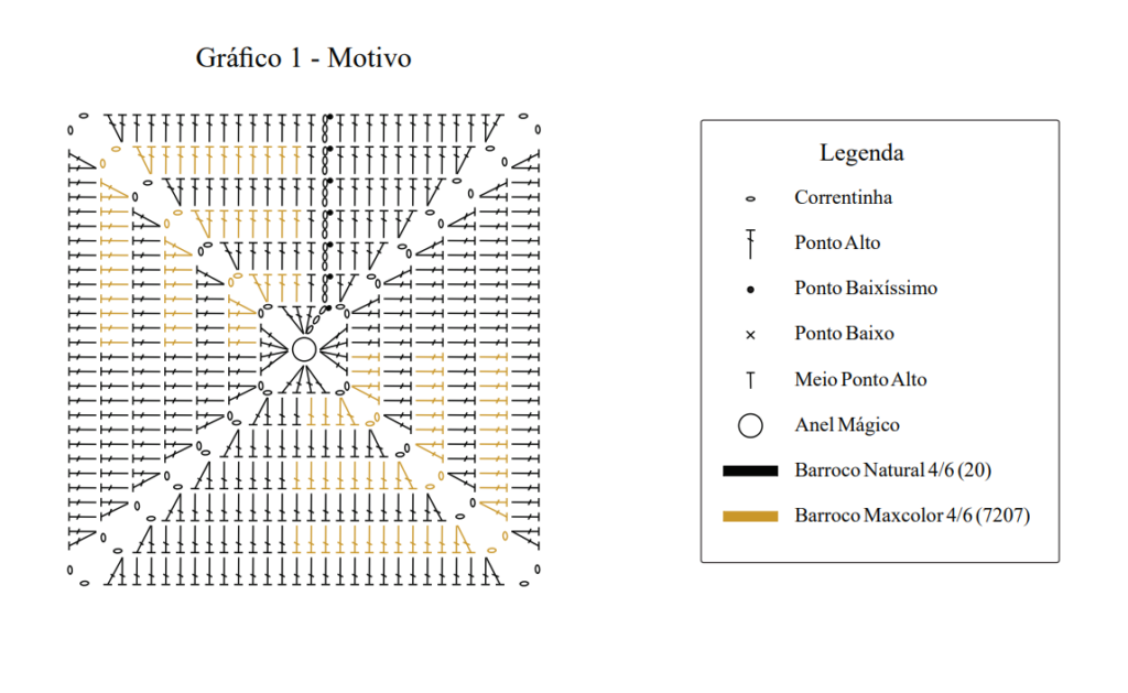 - Troca de cores: Utilize o fio âmbar para adicionar contraste e profundidade visual, alternando conforme o grafico estabelecido.