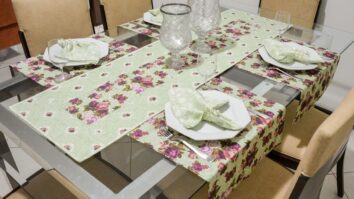 O Patchwork, por sua vez, traz uma dimensão artesanal e nostálgica ao ambiente. Com sua mistura de estampas e texturas, é como se cada pedaço contasse uma história. Os jogos americanos, guardanapos e porta vinho em patchwork adicionam um charme especial, criando uma atmosfera descontraída e elegante ao mesmo tempo.