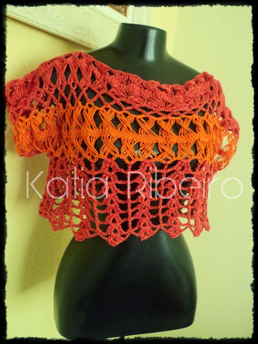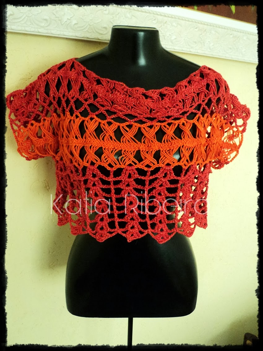 Olha eu novamente com a mini blusa em crochê de grampo só que essa ficou um pouco maior e aumentei as carreiras do acabamento, como tive sobra de quase um novelo do fio que fiz a anterior resolvi misturar com esse com brilho e achei que ficou bem legal !!!
