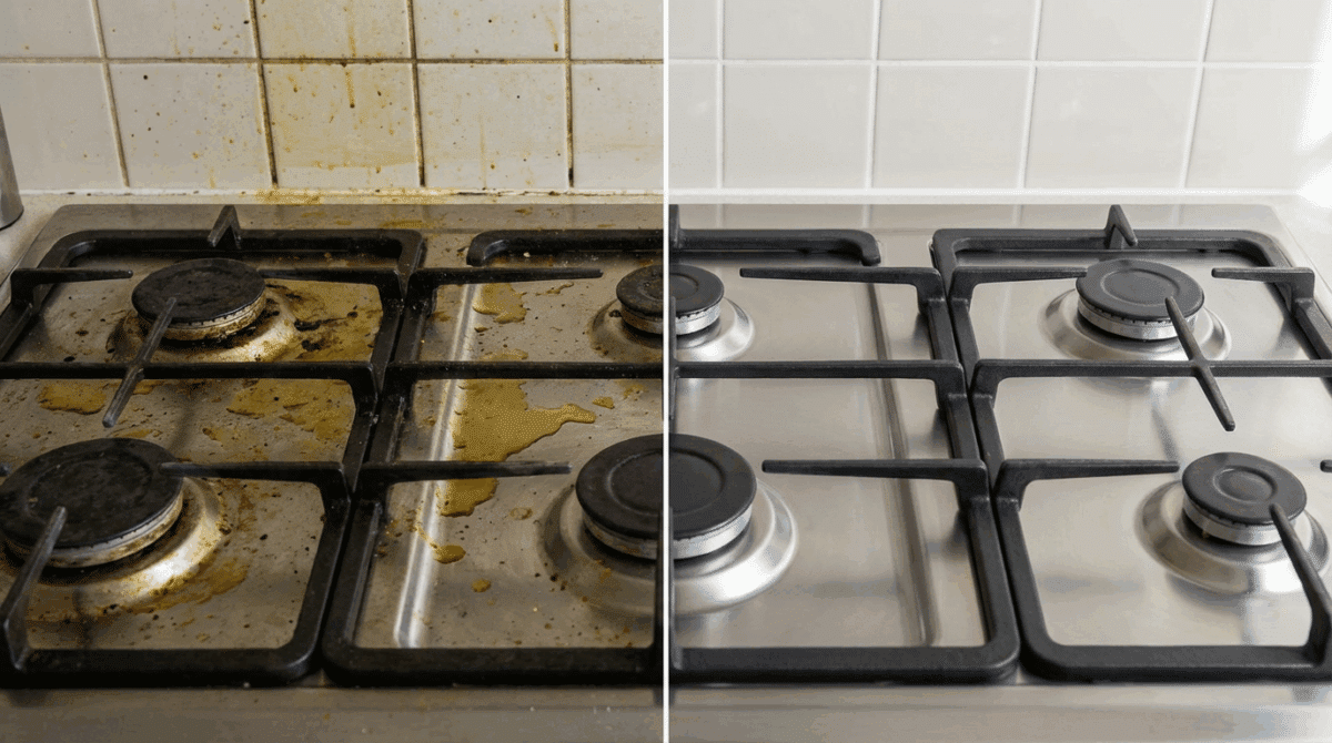Você olha para o fogão, coifa ou azulejos da cozinha e vê aquela gordura velha, amarelada, grudada há anos. Esfrega, esfrega… e nada. A sensação é de que só produto forte e muito braço vão dar conta.