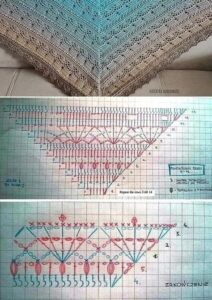 - Aumentos e diminuições: Para criar a forma triangular típica de um xale, faça aumentos no início e no final de cada carreira. Por exemplo, faça 3 pontos altos no mesmo espaço para aumentar.