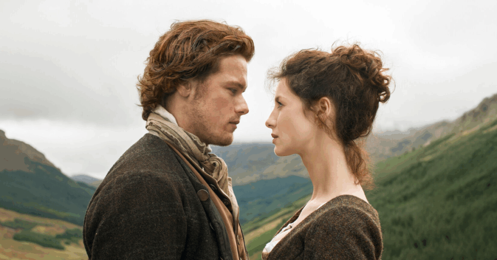 - Romance intenso: o amor de Claire e Jamie (Sam Heughan) atravessa barreiras do tempo, criando momentos emocionantes e inesquecíveis.