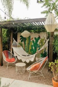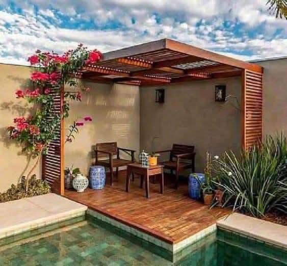 - Área de descanso: Ideal para colocar cadeiras, bancos ou redes e criar um cantinho relaxante.