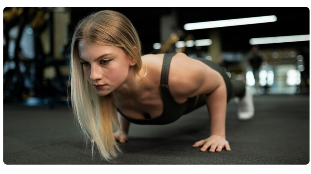 - Flexão: Realize uma flexão de braços, mantendo a forma corporal alinhada e controlada.