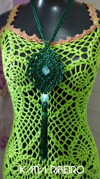 O colar fiz com o fio Encanto da Círculo , me inspirei no vídeo abaixo porém a corrente eu fiz dupla com ponto segredo curto.