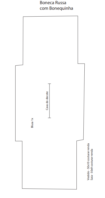 A construção da Boneca Russa começa com o corpo. Inicialmente, deve-se riscar os moldes para o corpo, cabeça, braços e pernas no tecido escolhido para a pele. Após cortar, costure no risco, desvirando e enchendo bem com fibra siliconada para que a boneca ganhe estrutura sólida. Fechar com pontos manuais assegura firmeza às costuras.