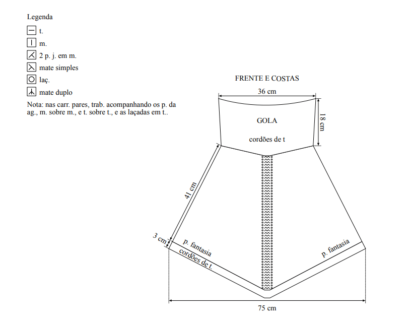de t.). Arremate todos os p. de uma só vez. - Frente – Trab. igual as costas.