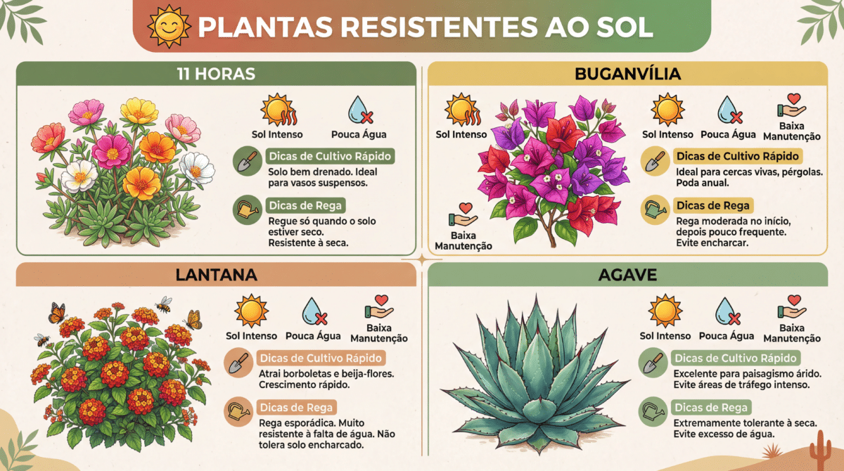 Criar um jardim com plantas resistentes, colorido e exuberante sob sol pleno não precisa ser sinônimo de mangueira ligada todos os dias. Ao escolher espécies como a Onze-horas ou a Primavera, você trabalha a favor da natureza, respeitando o clima e economizando recursos. O resultado é um quintal vivo, vibrante e, acima de tudo, sustentável, que exige pouco de você e entrega muita beleza.
