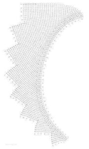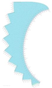 - Pontos Utilizados: Ponto rendado, ponto concha e ponto leque.