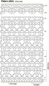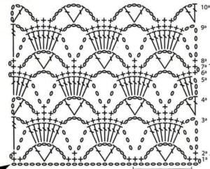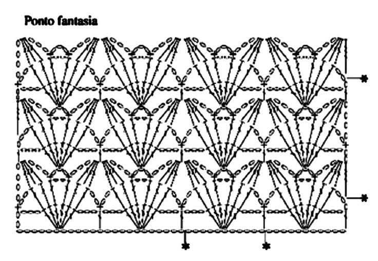 - Ponto Leque: Similar ao ponto concha, mas com maior número de pontos altos, criando um efeito mais aberto e arejado. Excelente para blusas de verão.