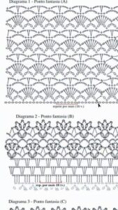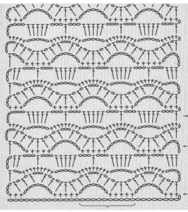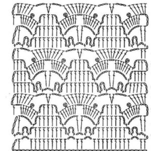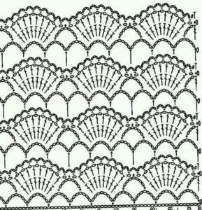 - Ponto Concha: Formado por uma sequência de pontos altos, criando um efeito de concha. É ótimo para adicionar detalhes decorativos a blusas.