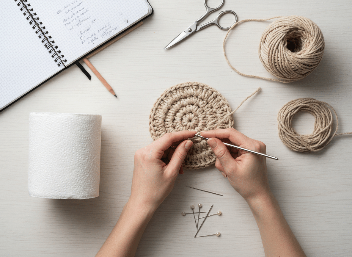Antes de pensar em gráficos avançados, vale começar com pontos simples, como correntinhas, ponto baixo e ponto alto. Assim você entende as proporções do rolo e aprende a adaptar o tamanho da peça sem sofrer.