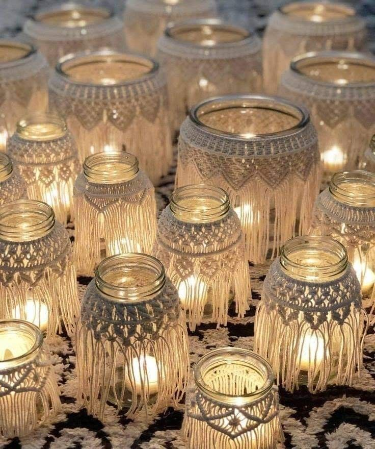 Os potes decorados com macramê são uma excelente opção para decorar festas e eventos especiais. Use potes de vidro ou cerâmica e decore-os com macramê para criar centros de mesa únicos e elegantes. Adicione velas, flores ou outros enfeites dentro dos potes para um toque final. Esses potes decorativos podem ser reutilizados em várias ocasiões, tornando-se uma escolha sustentável e estilosa para sua decoração de eventos.