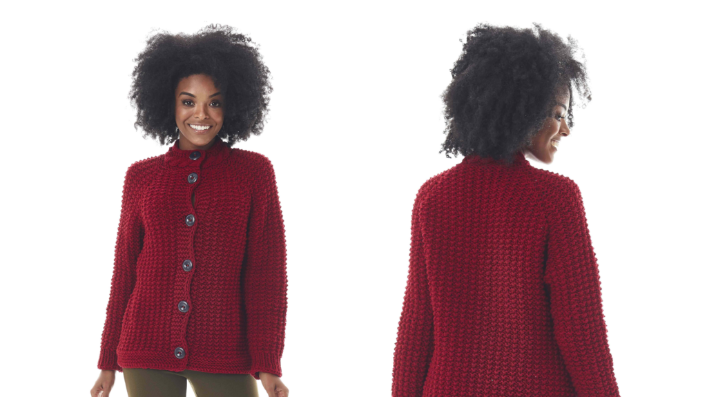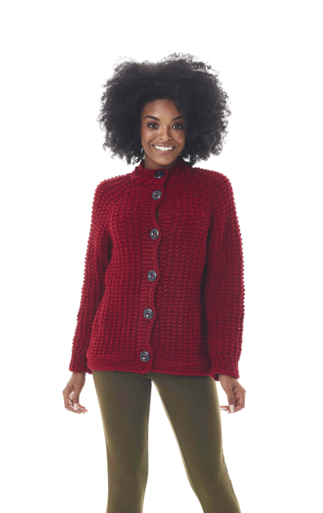 Pontos utilizados Barra 1/1: 1 m., * 1 t., 1 m.*. Ponto tricô: tric. todas as carr. em m. ou t.. Ponto fantasia: 1ª carr.: 1 m., * 1 t., 1 m.*. 2ª carr. e todas pares: em meia. Ponto de corda: siga o gráfico. Amostra – Um quadrado de 10 cm em p. fantasia com fio duplo e nas ag. nº 6,0mm = 11 p. x 19 carr. Execução – Costas – Com o fio usado duplo, monte 60 p. nas ag. nº6,0mm e tric. em p. tricô. A 4 cm do início do trabalho tric. em p. fantasia. Rem. de cada lado cada 8 carr.: 1 p. (3 v.). A 22 cm do início do trabalho aum. de cada lado cada 6 carr.: 1 p. (3 v.). A 36 cm do início do trabalho para as cavas rem. de cada lado cada 2 carr.: 3 p. e 1 p. (17 v.). A 56 cm do início do trabalho rem.. Frente direita – Com o fio usado duplo monte 32 p. nas ag. nº 6,0mm e tric. em p. tricô. A 4 cm do início do trabalho tric. do seguinte modo: 6 p. em p. tricô e 26 p. em p. fantasia. Rem. à esquerda cada 8 carr.: 1 p. (3 v.). A 22 cm do início do trabalho aum. à esquerda cada 6 carr.: 1 p. (3 v.). A 36 cm do início do trabalho para a cava rem. à esquerda cada 2 carr.: 3 p. e 1 p. (17 v.). Ao mesmo tempo distribua 5 casas (rem. 2 p. e na carr. seguinte aum. 2 p. no mesmo espaço dos p. rem.), a 2 p. da borda, a 1ª casa a 6 cm do início do trabalho, as outra a 12 cm entre elas. A 56 cm do início do trabalho rem.. Frente esquerda – Mesmo trabalho da frente direita ao contrário e sem as casas. Mangas – Com o fio usado duplo monte 24 p. nas ag. nº 6,0mm e tric. em barra 1/1. A 5 cm do início do trabalho tric. em p. fantasia. Aum. de cada lado cada 6 carr.: 1 p. (10 v.). A 41 cm do início do trabalho, para a cava rem. de cada lado cada 2 carr.: 3 p. e 1 p. (11 v.) e cada 4 carr.: 1 p. (3 v.). A 61 cm do início do trabalho rem.. Gola – Com o fio usado duplo monte 10 p. nas ag. nº6, 0mm e tric. em p. de corda seguindo o gráfico. A 2 cm do início do trabalho faça uma casa do mesmo modo das casas da frente. A 22 cm do início do trabalho rem.. Acabamento – Monte as cavas das mangas, nas cavas da frente e das costas. Costure os lados e as mangas. Costure a gola ao longo do decote, com a casa na mesma direção das casas da frente. Pregue os botões na frente esquerda na mesma direção das casas da frente direita. Artesão – Marcos A Filho (205464)