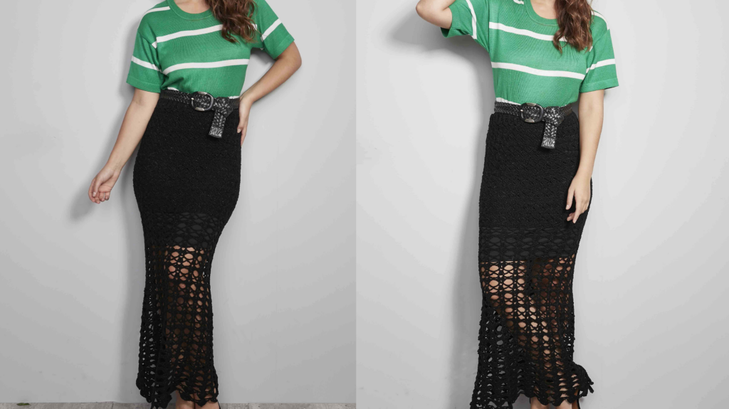 - Combine com Blusas Elegantes: Para um look mais formal, combine a saia de crochê longa preta com uma blusa de seda ou chiffon. Adicione um cinto elegante para definir a cintura e completar o visual.