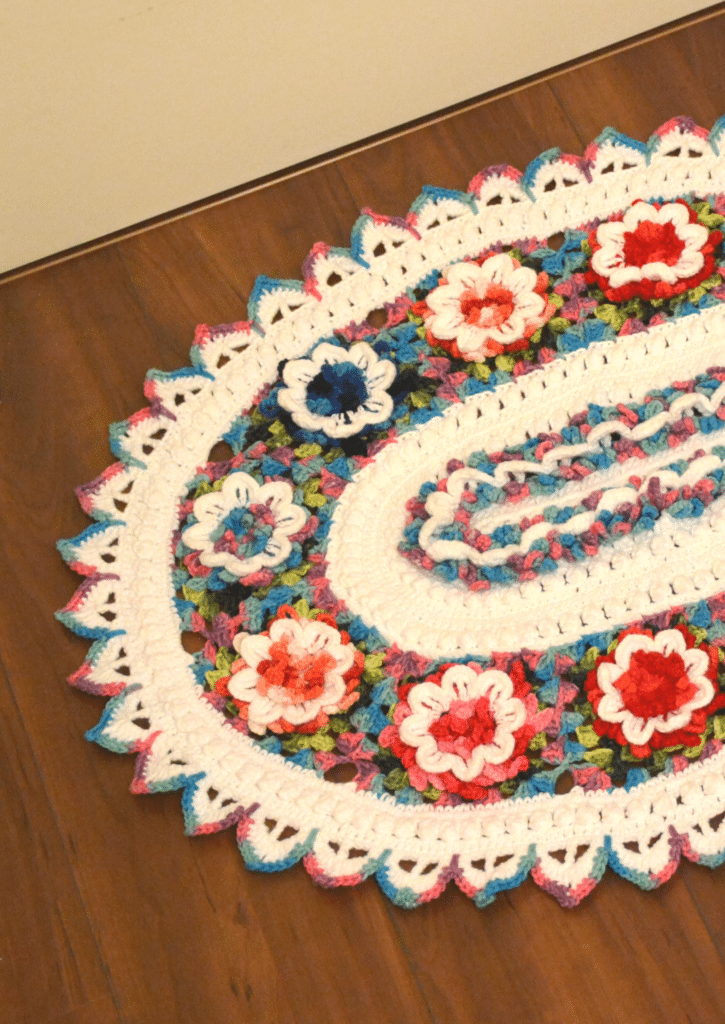 - Padrão de Crochê: Existem muitos padrões disponíveis para tapetes de crochê ovais com flores. Escolha um que se adapte ao seu nível de habilidade e estilo pessoal.