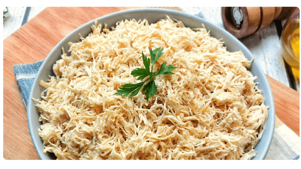 - 300g de frango desfiado e temperado a gosto;