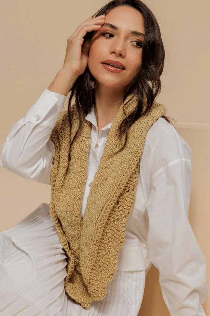 Feito com fios de alta qualidade, o xale de tricô oferece uma textura macia e confortável. Fios de lã, seda ou alpaca são excelentes escolhas, pois proporcionam um toque agradável à pele e um caimento perfeito.