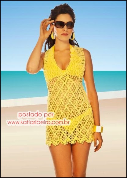 •A saída de praia é toda feita em uma peça só, com fio duplo. Inicie na altura da cava e monte 240 corr., feche em