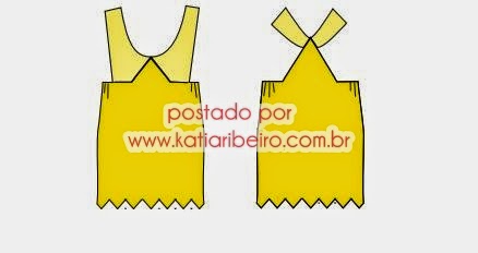 Arremate as bordas retas do p. fantasia com 1 carr. de p.b.. Por último, passe o lastex na parte reta das costas, como mostra o esquema.