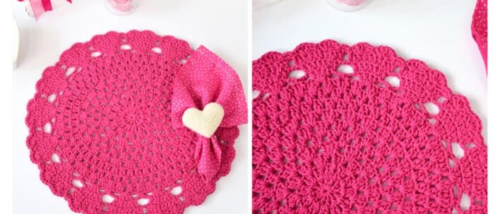 Sousplat de Crochê Rosa Coração : Receita, gráfico e tutorial