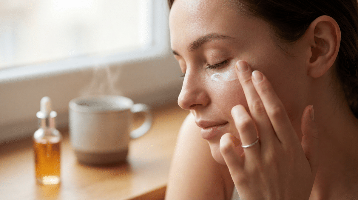 Complementando o choque térmico, a nutrição noturna é indispensável. Ao aplicar um creme com cafeína ou ácido hialurônico, utilize o dedo anelar para dar batidinhas leves de dentro para fora. Essa massagem estimula a drenagem linfática caseira, ajudando a escoar líquidos retidos e preencher linhas finas, enquanto o sono regulado garante a regeneração celular necessária para que esses cuidados externos surtam efeito.