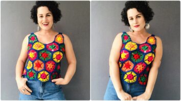 1.8k Views no CROCHÊ, Cropped, Squares Cropped de Crochê Color Block: Uma Peça Colorida e Única! Veja Mais