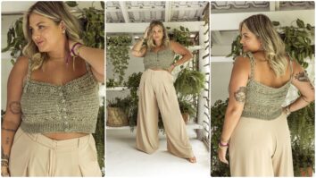 1.9k Views no CROCHÊ, Cropped Cropped de crochê jeans militar apresenta modelito lindo e charmoso! Veja Mais