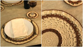 1.9k Views no CROCHÊ, Sousplat Sousplat de Crochê Castanha Brilho: Elegância que Sofistica! Veja Mais