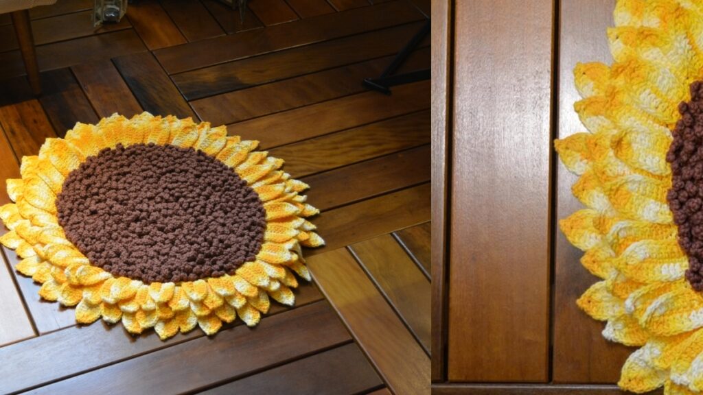 Essas etapas são essenciais para recriar a imagem e textura dos girassóis no crochê. A atenção aos detalhes nos arcos e pétalas é o que define a qualidade do tapete.