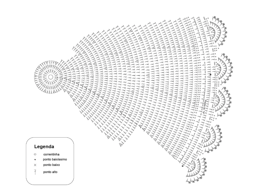 4a e 5a carr: 3 corr, 1 p.a. na base das corr, *1 p.a. em cada dos 4 próximos p.a., 2 p.a. no p.a. seguinte*. Repita de * a *.