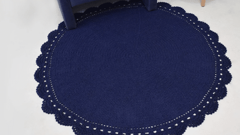 O formato redondo do tapete cria um visual cativante e convidativo. O detalhe rendado do crochê adiciona textura e profundidade à peça, criando um padrão intrincado que é ao mesmo tempo visualmente impressionante e funcional. aprenda aqui no blog Katia Ribeiro Crochê essa linda peça.