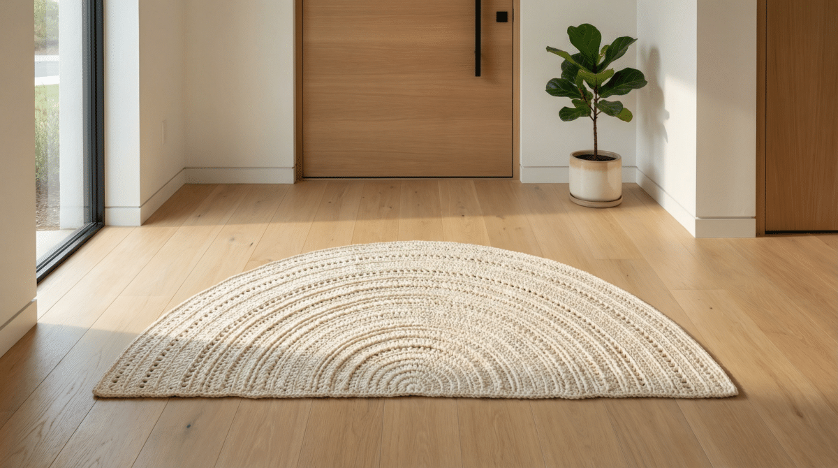 Os tapetes de croché meia lua são a solução perfeita para quem deseja aliar funcionalidade e charme em espaços reduzidos. Ao contrário dos modelos retangulares tradicionais, o formato semicircular encaixa-se perfeitamente no vão das portas, evitando que as pontas se dobrem ou atrapalhem o movimento de abertura.