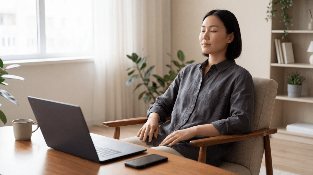 - Postura de Repouso: Sente-se de forma confortável, mas não deite para não induzir o sono. Mantenha os olhos fechados ou fixos em um ponto neutro.