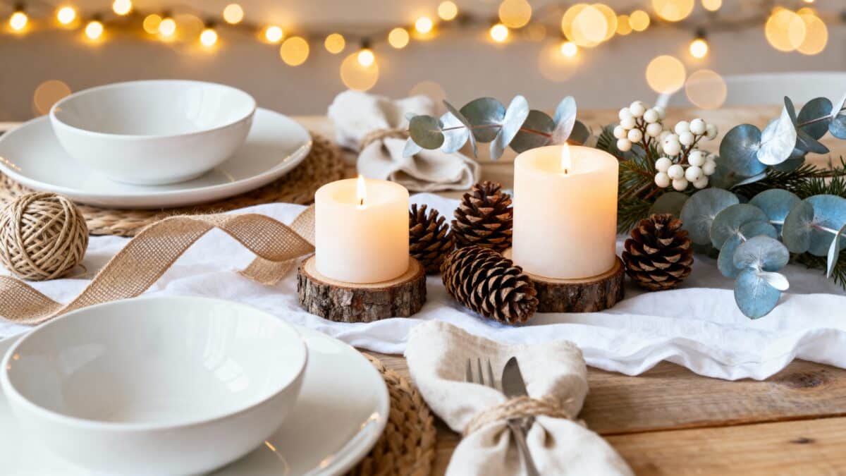 Velas artificiais de LED, luminárias de fio de cobre e cordões de micro-luzes são as grandes apostas. Elas criam um efeito cintilante discreto, ideal para compor mesas, arranjos ou envolver árvores e guirlandas de forma leve e encantadora.
