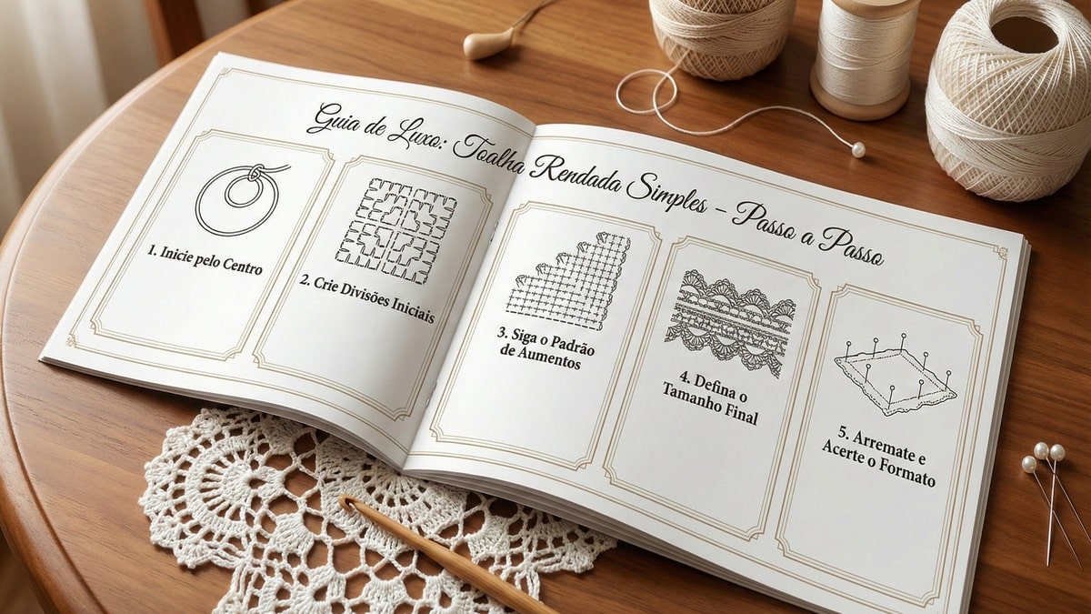 Você não precisa dominar todos os pontos para criar uma toalha rendada bonita. Alguns poucos pontos, bem combinados, já resultam em desenhos sofisticados.